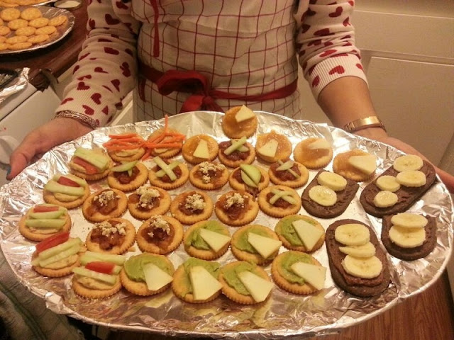 Me with first prepared platter of appetizers!! Please ignore the mess in the background.. preparations in order!!